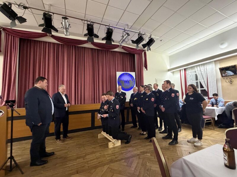 Nach der Begrüßung eröffnete das Hulzberch Trio musikalisch das Abendessen. Kommandant Markus Guttenberger erinnerte anschließend kurz an die 150-jährige Geschichte der Wehr: Gegründet 1876, mitten in der Epoche des industriellen Wandels, meisterte die Feuerwehr zahlreiche Herausforderungen – von den beiden Weltkriegen über Wiederaufbau und technische Neuerungen bis hin zur Modernisierung der Fahrzeuge und des Gerätehauses. Besonders hervorgehoben wurde die kontinuierliche Förderung von Ausbildung und Jugendarbeit sowie die Integration von Frauen, die heute knapp 30 Prozent der aktiven Mitglieder ausmachen.